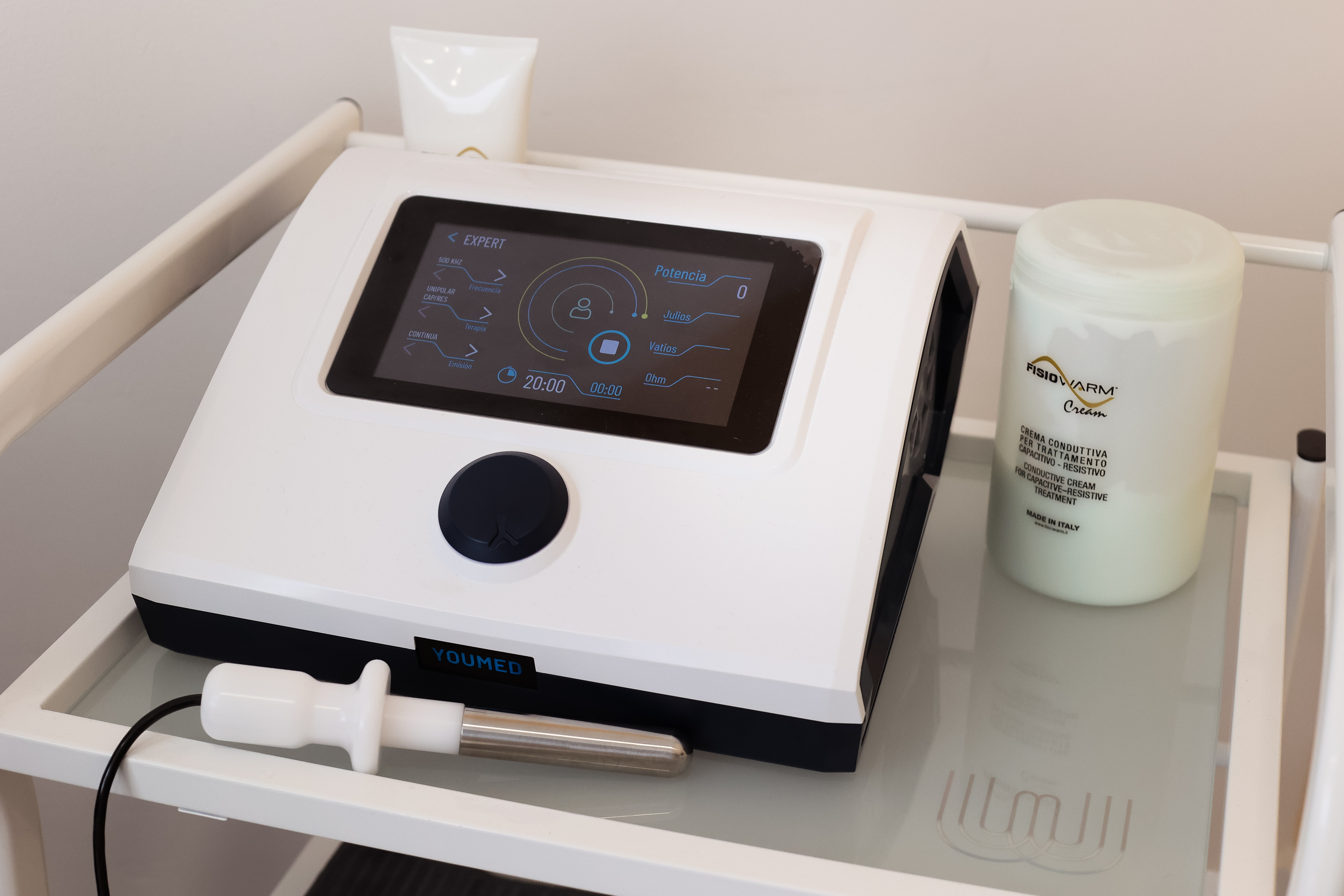 También llamada diatermia o tecarterapia. Consiste en la aplicación de una corriente electromagnética al tejido. El campo electromagnético que se crea al aplicar los electrodos de los equipos de diatermia genera calor, lo que permite aplicaciones terapéuticas específicas y fáciles de administrar incluso en las profundidades del tejido. Se utiliza para reducir inflamación, vascularizar tejidos, reducir el dolor, aumentar la producción de colágeno, mejorar las cicatrices, drenar...